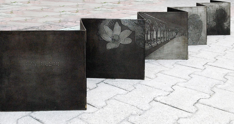 Inspired by braille, I try to transform photograph to metal plate like anaglyph. Then I selected my favorite poem “History Museum” and invited my blind friend to translate it to braille and made it into a metal anthology in form of Chinese albums, viz. one page poem is accompanied with one page of picture.